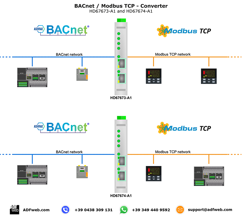 The BACnet / modbus TCP – 转换器 allows to integrate Modbus TCP networks into a BACnet network.