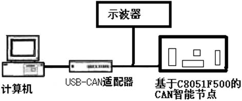 为了测试本文的canopen从节点协议,搭建了基于 USB-CAN模块的测试平台,结构如图6所示。主站是装有ZLGCANTest的计算机,以USB-CAN通信模块作为 CAN网络接口,实现与从站的连接。示波器监视总线波形,通信波特率设置为500kb/s。