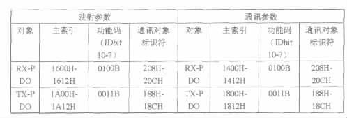 从节点需要能够访问主节点的对象字典 ,因此 ,主节点需要一个 SDO。主节点需要向十三个从节点发送数据 ,因此需要十三个 Tx—PDO和十三个Rx—PDO。每个 PDO又由 PDO通讯参数 ( PDOParameter)和 PDO映射参数 ( PDOMapping)两部分组成。如下表所示 :