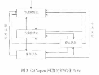 3.4网络初始化流程 canopen网络的初始化流程如图 3所示 :在智能消防炮网络中 ,每个节点在上电和内部初始化后自
