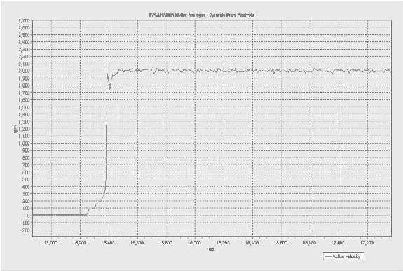 CAN总线信号由高速收发器TJA1050使用差分电压传送,两条信号线被称为CAN_H和CAN_L,静态时均是2.5V左右,此时状态表示为逻辑1也可以叫做“隐性”。用CAN_H比CAN_L高表示逻辑0,称为“显性”。此时,通常电压值为CAN_H=3.5V和CAN_L=1.5V。当“显性”位和“隐性”位同时发送的时候,最后总线数值将为“显性”。在实验室条件下,通过示波器对CAN_H与CAN_L接口信号采集,测得静态时端口是2.59V,通信状态下,CAN_H为3.45V,CAN_L为1.55V左右。同时,电机3863H024C最高转速设定为4000rpm,在本文控制平台上,通过CANopen通信机制控制电机由静止到转速为2000rpm的小实验,以测试本文中CANopen通信机制的成功实现,并由监控软件Motion Manger测得实时电机转速如图7所示。