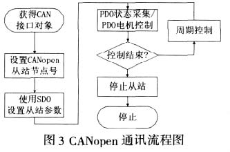 在电机控制和传感器采集模块的内部 ,对 CANopen网络从节点的编程流程如图 3所示 (电机控制模块内部的流程 ):
