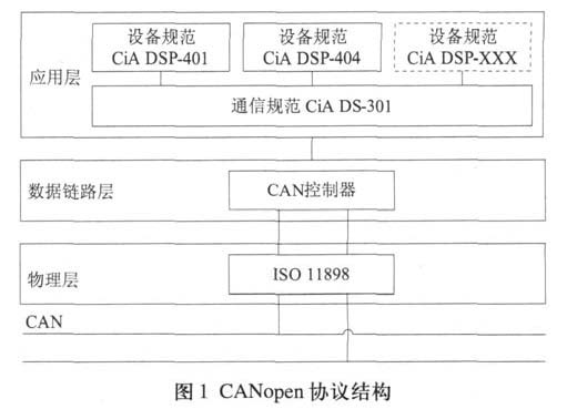 CAN(Controller Area Network,控制器局域网)ication Profile)和设备规范(Device Profile)。通信总线的应用范围非常广泛,但其只定义了物理层和规范(CiA DS-301)定义了基本的数据通信方式及数据链路层,而没有规定应用层,并非一个完整的其特性;设备规范(CiA DSP-401~DSP-XXX)定义