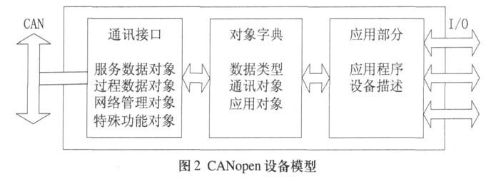 议的核心,它连接了CANopen设备的通讯接口和应用部分,如图 2所示。